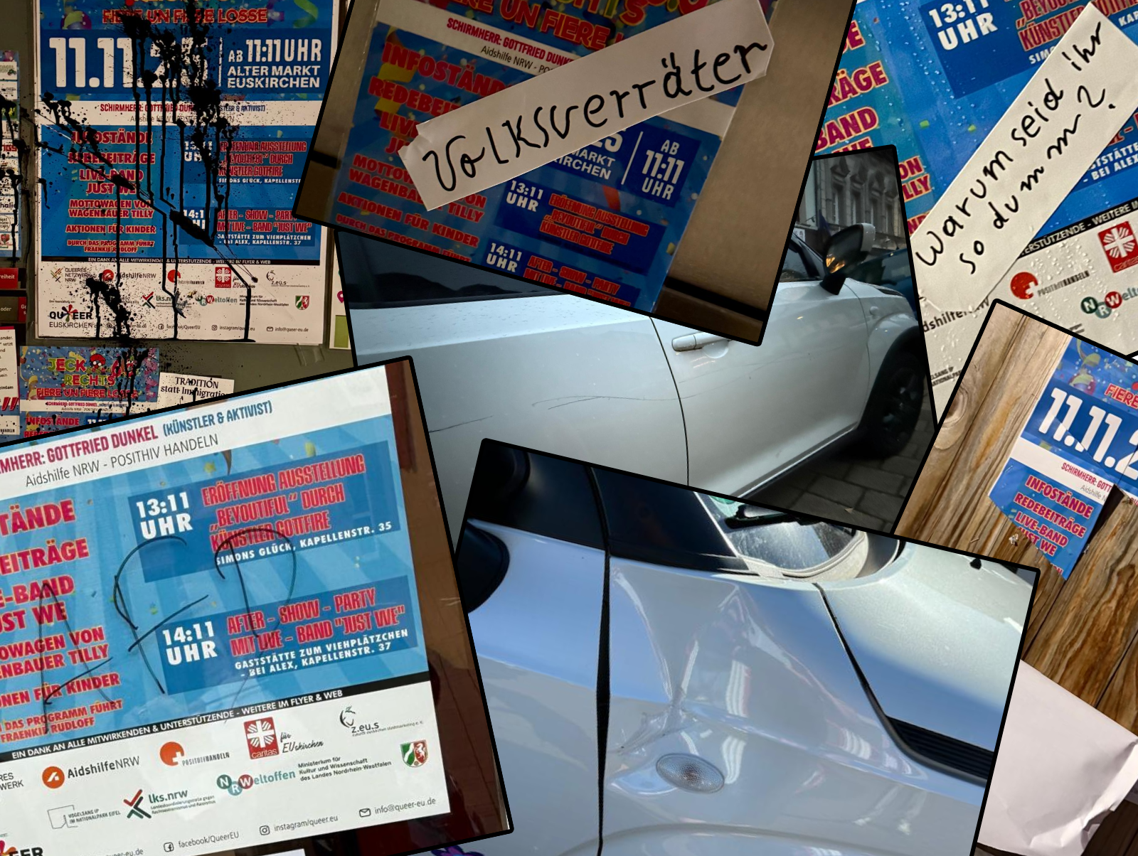 In den letzten Wochen hat Euskirchen erlebt, wie gezielt queere Menschen, demokratische Initiativen und Zivilcourage angegriffen werden. Was bei ein paar beschädigten Plakaten begann, ist längst zu einer bedrohlichen Serie von Angriffen geworden – und wir können nicht länger schweigen.